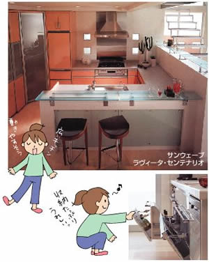 他にもこんな意見がありました。家族みんなでワイワイできるキッチンが理想。対面 キッチンがいい。行動が無駄なくできるキッチン。アイランド型がほしい。などでは、いよいよキッチンを見比べてみましょう。