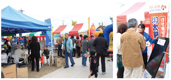 セキュリティやソーラー、ガス機器などのコーナーも盛況です。屋台の焼きそばやだんごなども大人気でした!