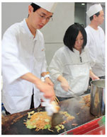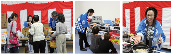 飲食コーナーではひっきりなしにお客様が来てとても賑やかです。ガスコンロで簡単に作れる炊き込みご飯!