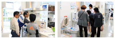 ![]() 人数限太陽光発電の補助金制度で、興味を持たれる方が大勢いらっしゃいました。ガスコンロなどの新商品にも皆さん興味津々。 |