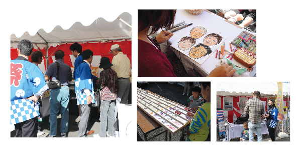 フランクフルトやみたらし団子が振る舞われ、お祭り気分が盛り上がります。毎年大人気なのは似顔絵コーナー。似顔絵を楽しみに来てくださる方も多いようです。