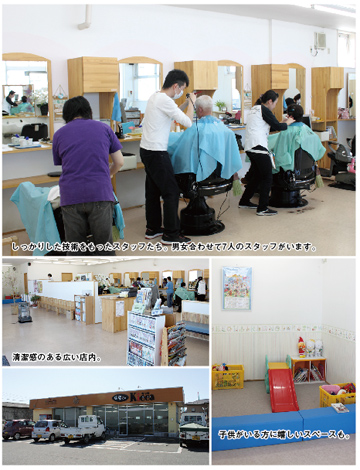 「床屋」と聞くと男性の印象がありますが、「Kicca」には女性も多く来店します。「特にサッパリと髪を切りたいという方に喜ばれます。美容室だと控えめなカットでも、床屋ならバッサリと気持ちよく切ってくれる所が良いのだそうです。」とオーナーの操さん。口コミのおかげで、今では3〜4割が女性のお客様です。広い駐車場がいつも車でいっぱいの、老若男女問わず人気の床屋さんでした。