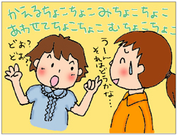 私がお世話している4才の女の子は、ただ今早口言葉に熱中!「あおまきがみ あかまきがみ きいろまきがみ!!」「かえるちょこちょこみちょこちょこ あわせてちょこちょこむちょこちょこ」って。早口になってないやん!